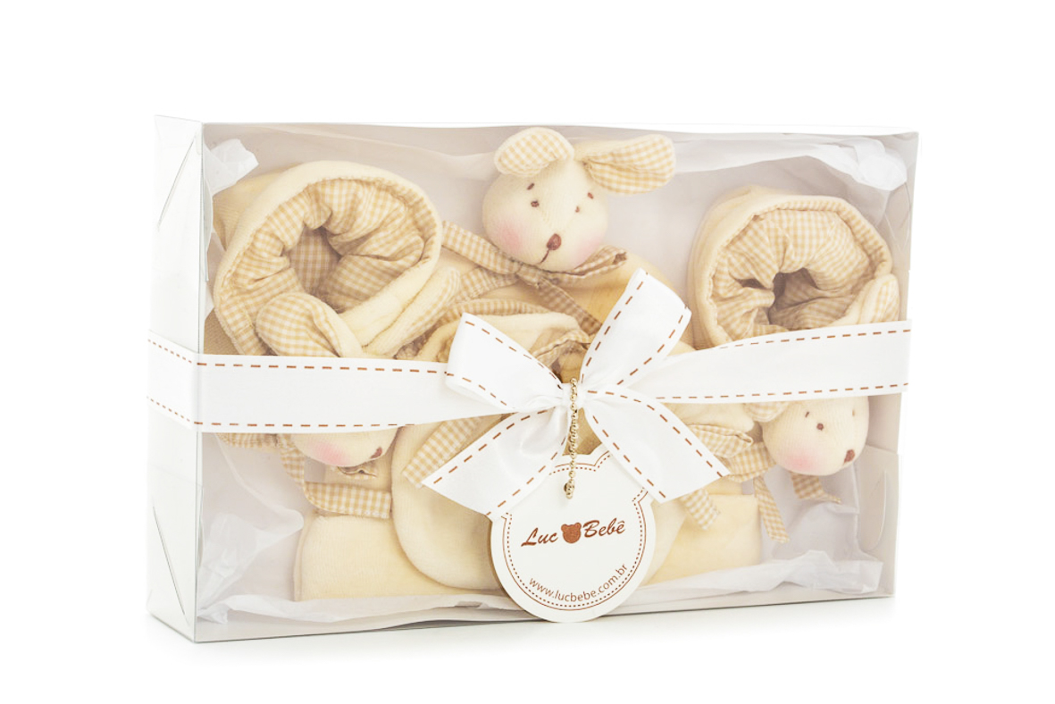 Kit Touca, Luva e Pantufa Ursinho